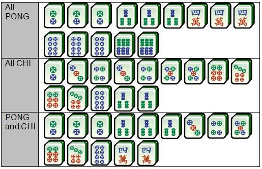 *Note that to win/ “HU” usually a minimum of 1 TAI/FAN is needed. For more information on how to get TAIs/FANs, please refer to http://en.wikipedia.org./wiki/Scoring_in_Mahjong, which is a decent guide to understand the concept of TAI/FAN and scoring.